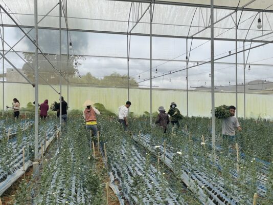 Đội ngũ nhân viên thu mua, phân loại, đóng gói hoa của công ty có[.....]